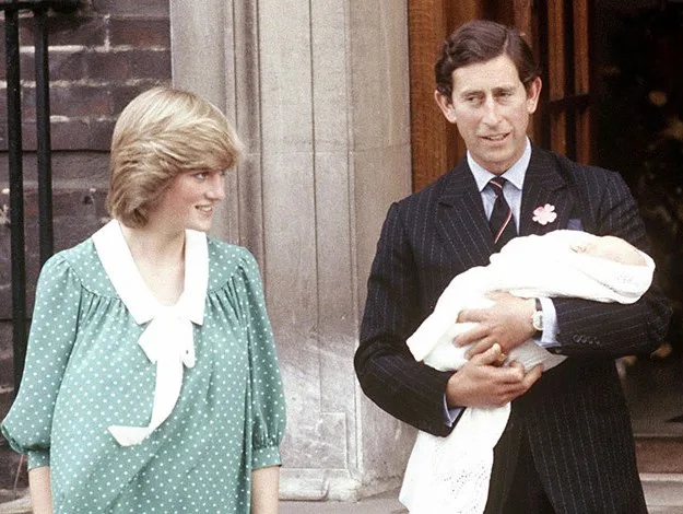 Leaving St Mary’s Hospital with baby Prince William in 1982.