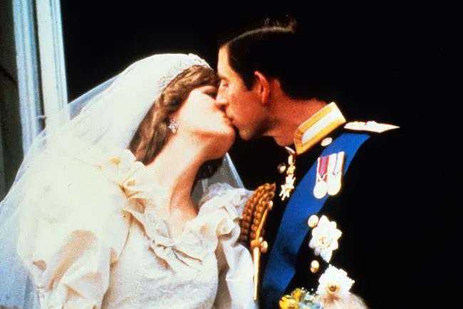 Prince Charles, Prince of Wales and Princess Diana, Princess of Wales, kiss on the balcony of Buckingham Palace following their wedding on July 29, 1981.
