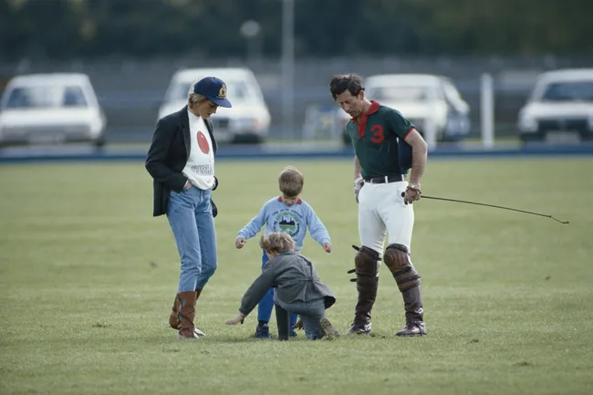 Diana, Princess of Wales with Prince Charles and their two sons, Prince William and Prince Harry, together attending a polo match in England in 1988.