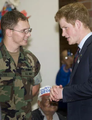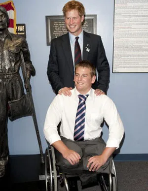 Harry met Marine Joe Townsend, as well as other US veterans of past and current conflicts. He also toured prosthetics facilities and a Post Traumatic Stress Disorder treatment clinic.