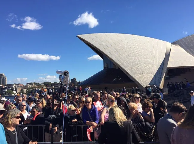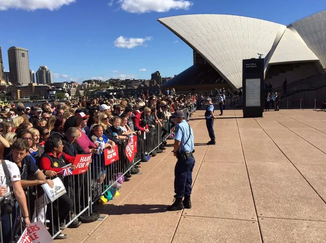 Crowds of royal enthusiasts wait for Prince Harry to arrive at the Opera House.