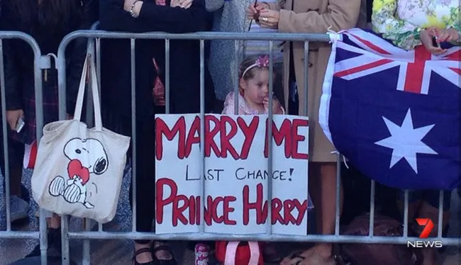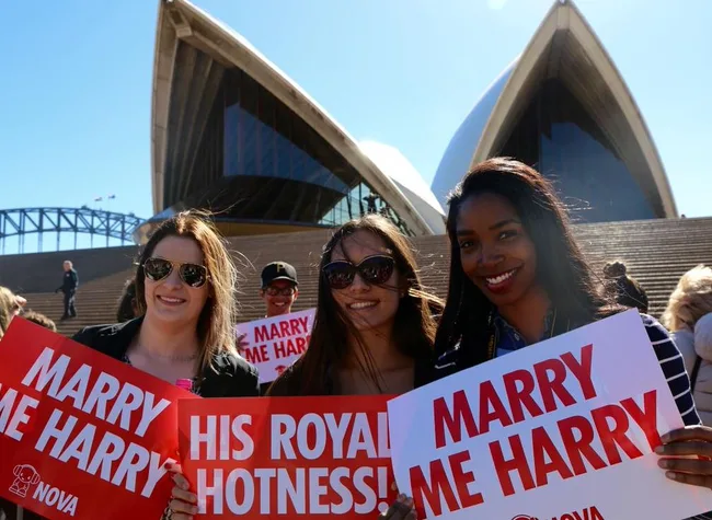 The Prince looks amused at the multiple proposals as he greeted Australians outside the Opera House.
