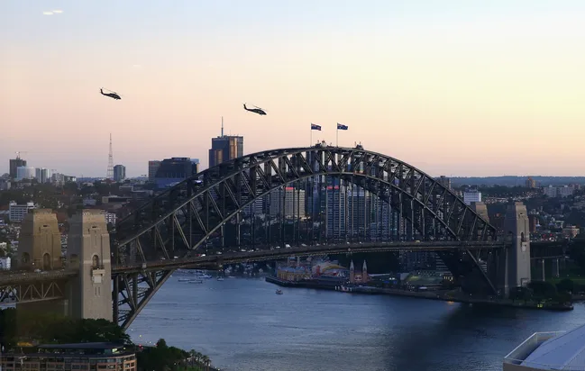 Earlier today Prince Harry flew a Blackhawk helicopter over the Sydney Harbour Bridge, in a military training exercise.