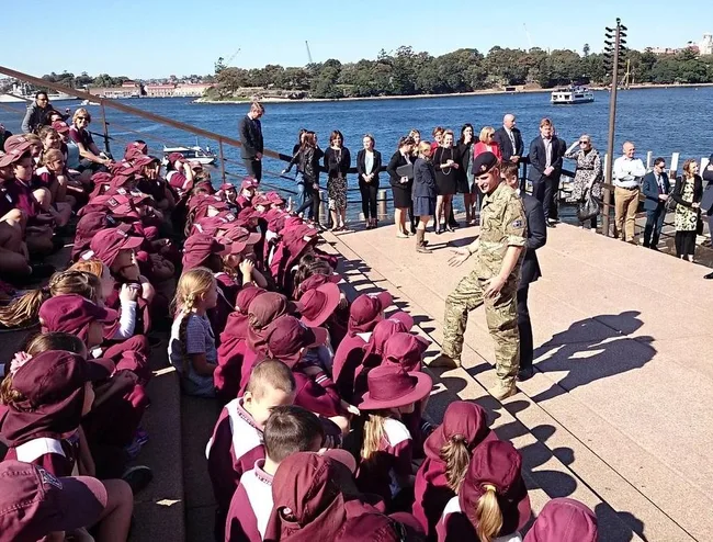 He spoke to a group of primary school children who were sitting on the steps of the Opera House, cheekily asking them why they weren’t at school.