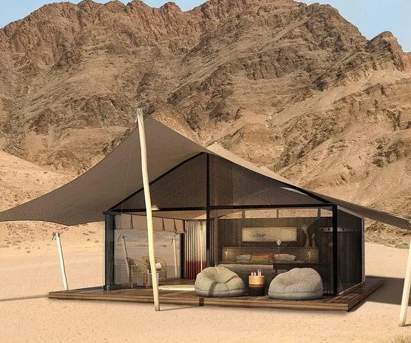 A red hot tip suggested the couple could stay in luxury Namibian camp, Hoanib Valley Camp.