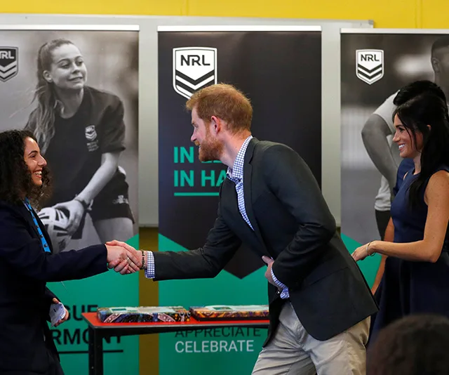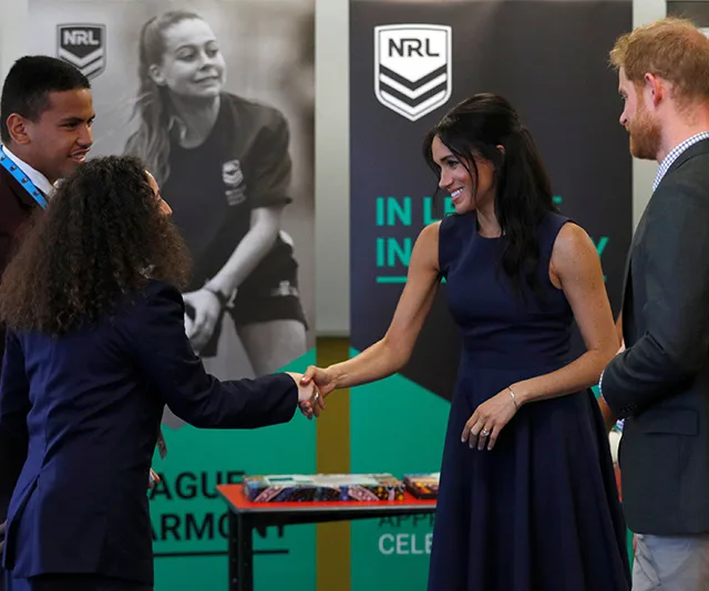 Prince Harry and Duchess Meghan delighted students at Macarthur Girls School on Friday. (Image: Getty Images)