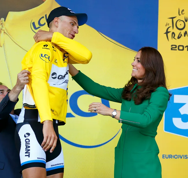 The Duchess later presented Marcel Kittel with the yellow jersey in Harrogate, England after he won stage one of the Tour de France.