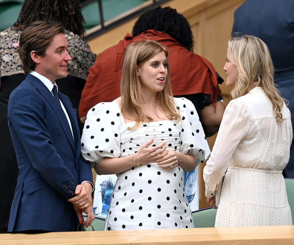 Princess Beatrice and Edoardo Mapelli Mozzi chat with Sophie, Countess of Wessex.