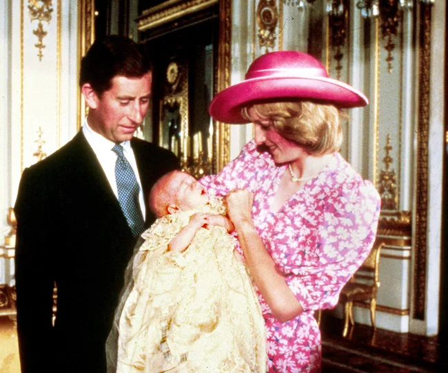 If it isn’t little William! Here he is at his christening with mum, Diana and dad, Charles.