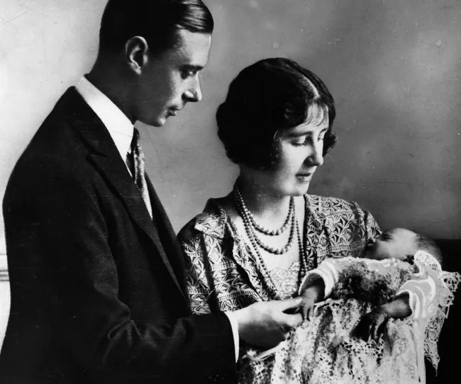 Princess Elizabeth (now Queen Elizabeth II) with parents Queen Elizabeth and King George.