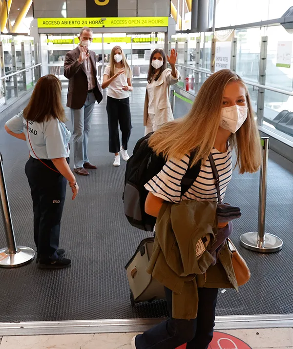 Queen Letizia of Spain hugs her daughter, Princess Leonor, at an airport in Madrid.