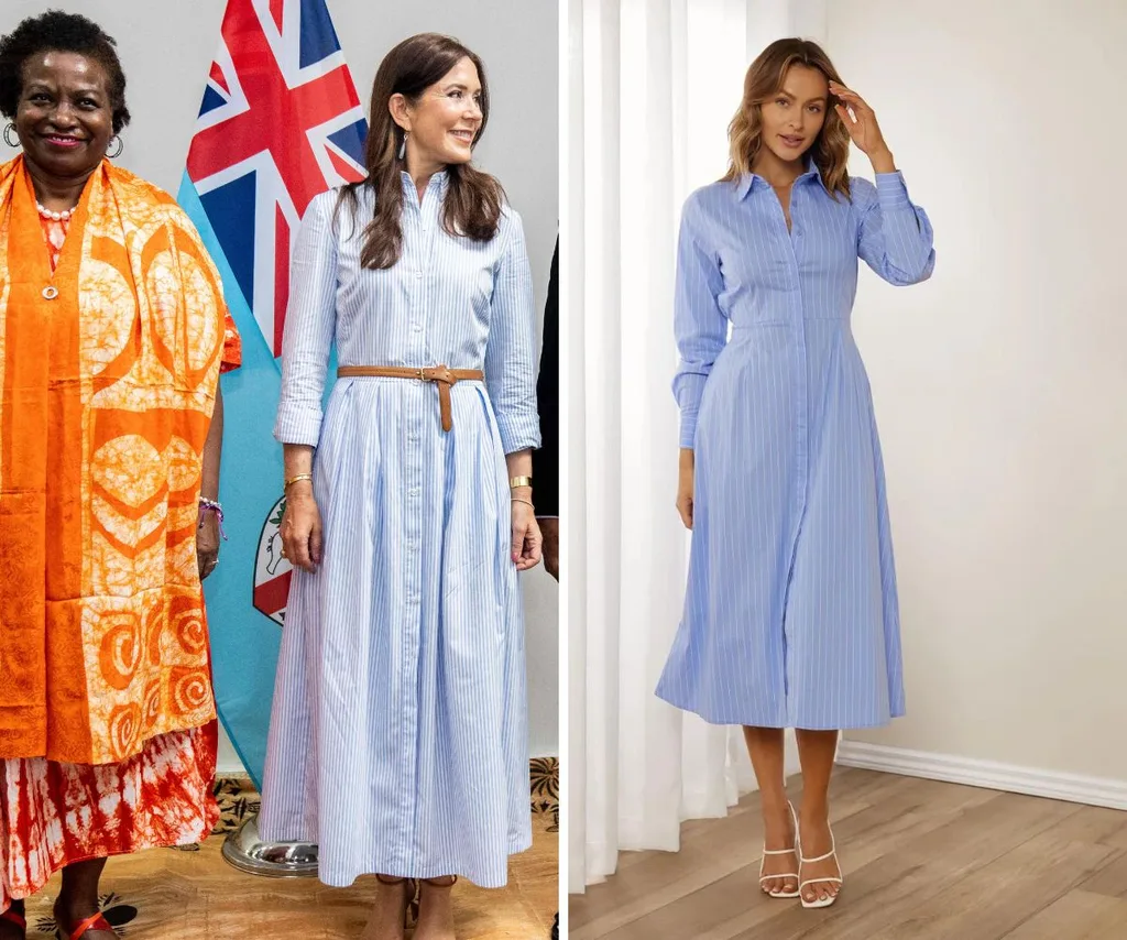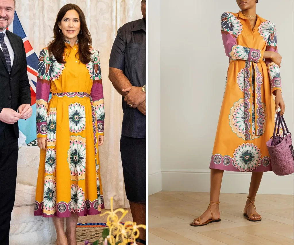 While Princess Mary wore a stunning shirt dress from eclectic designer Stella Jean, we will be shopping this amazing dupe from Australian brand Atmos&Here that is only $99.99!