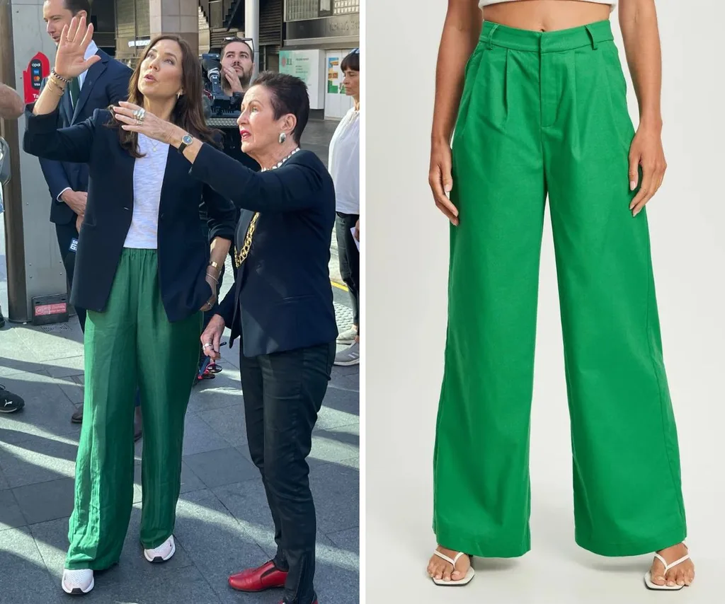 Pairing bright linen pants with a classic white tee and blazer makes an effortlessly chic look for a day out in Sydney city. We’ve also spotted the Crown Princess wearing a pair of white Nike runners, because comfort is key.