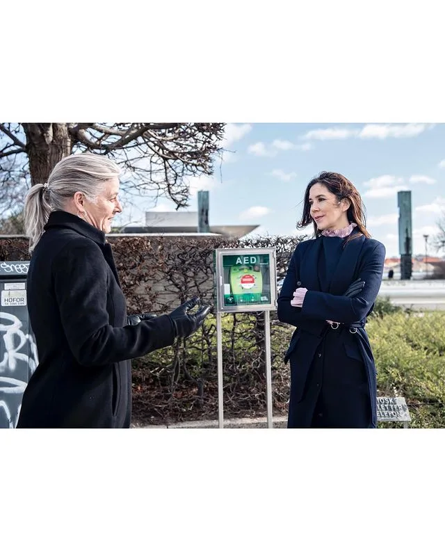 Sharing some candid images of a glowing Mary to Instagram, the Danish royal palace explained her visit to showcase a new defibrillator in her city of residence, Copenhagen.