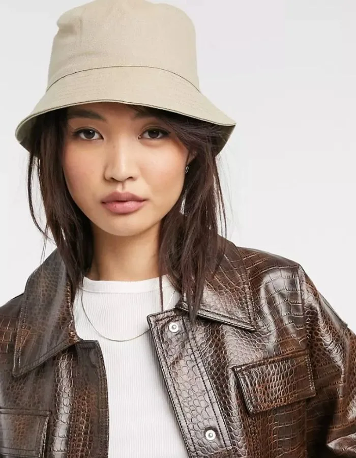 Asos Design Natural Bucket hat, $20.00, Asos.