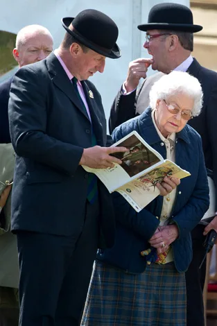 Her Majesty looked over the day’s program with a friend. Photo: Getty