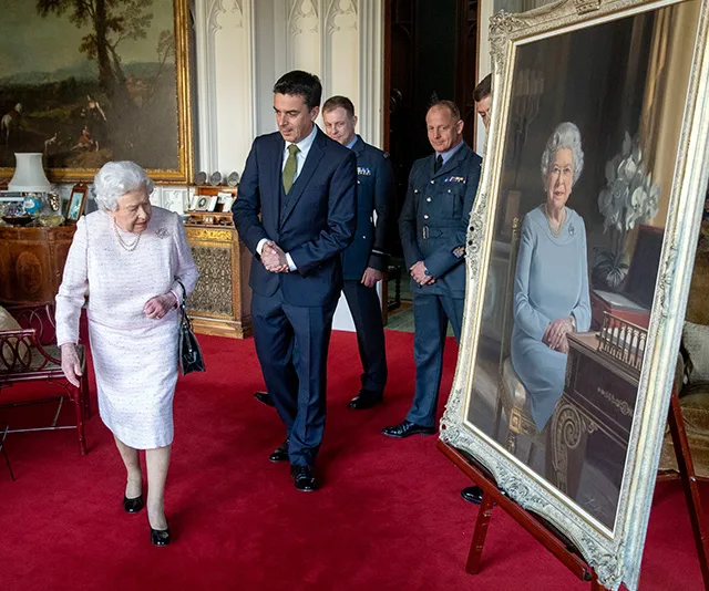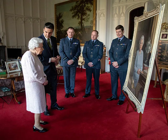 The painting itself was commissioned by the RAF Regiment for its 75th anniversary. In the portrait, the Queen is seen sitting in the castle’s White Drawing Room.