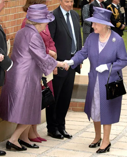 Thatcher visits Buckingham Palace in 2004.