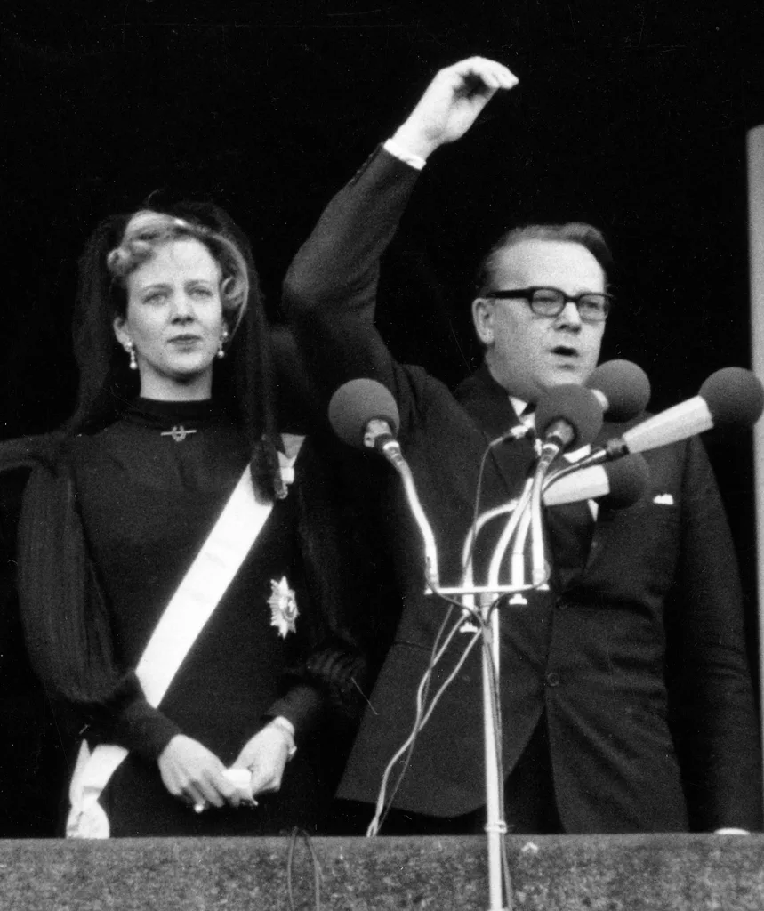Addressing the public from the balcony of Christiansborg Palace, Prime Minister Jens Otto Krag announced Margrethe’s accession to the throne – proclaiming her as Queen of Denmark.