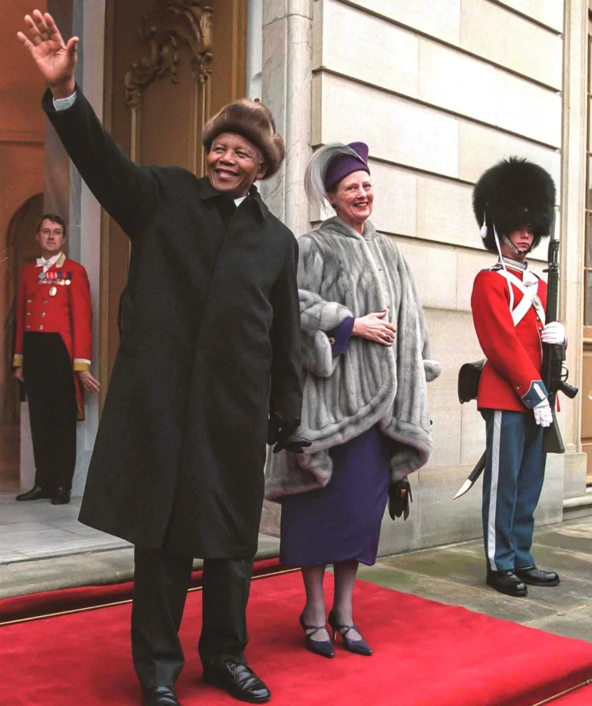 Following her visit to South Africa in 1996, Queen Margrethe hosted Nelson Mandela in March 1999 during his state visit to Denmark.