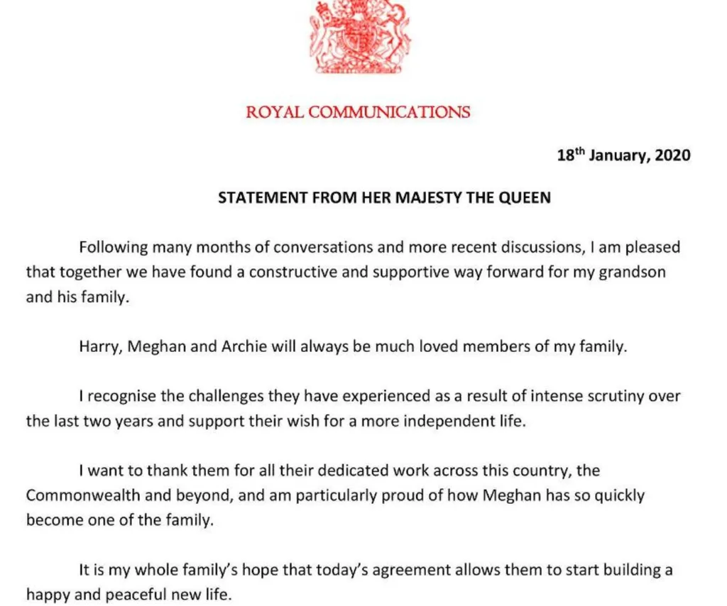 ”Harry, Meghan and Archie will always be much-loved members of my family.