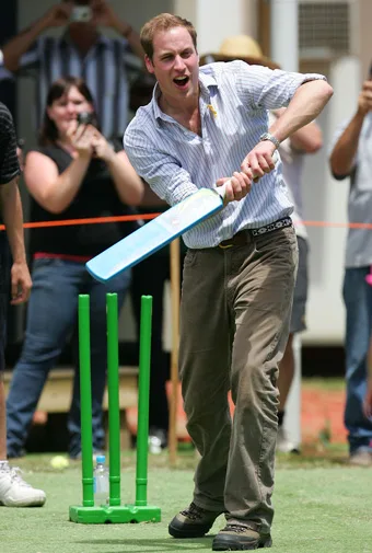 William playing cricket with victims of floods in Victoria.