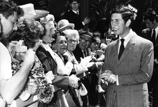 Prince Charles greets Australian fans in 1974.