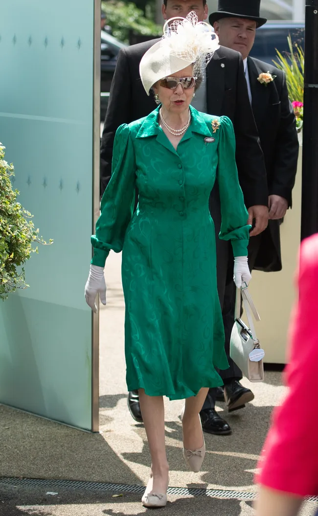 Princess Anne made an appearance on day two in shades of emerald green, complete with a white hat.
