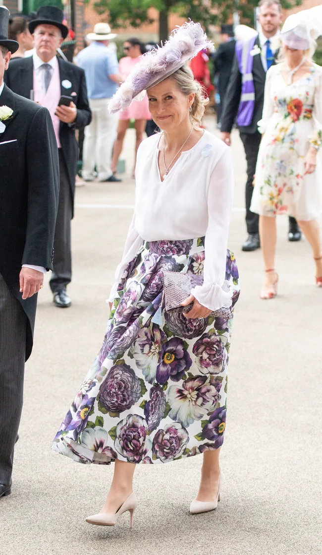 Sophie of Wessex led the fashion stakes on day two of Ascot by wearing shades of beautiful purple. She was accompanied by her husband Prince Edward.