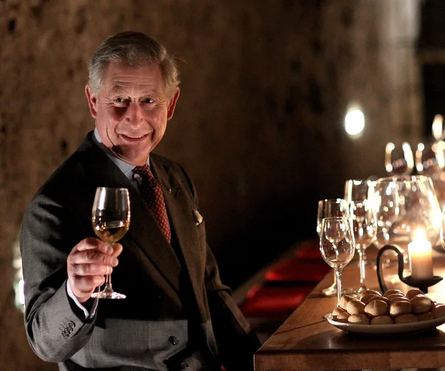 Cheers, Your Highness! Prince Charles takes part in a toast.