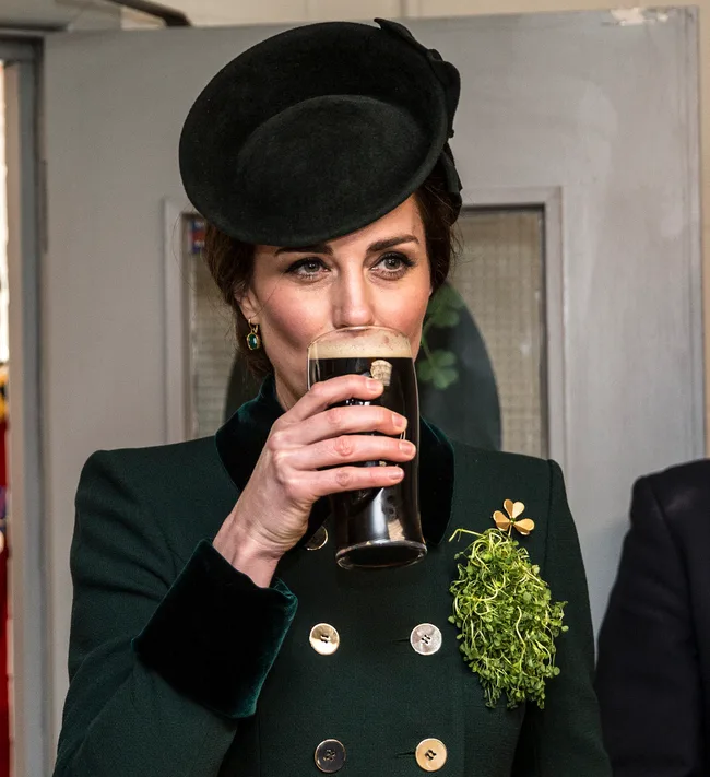 Kate drinks a glass of Guinness while on tour in Ireland.