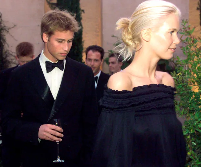 A young Prince William admiring the stunning supermodel, Claudia Schiffer with a champagne in his grip.