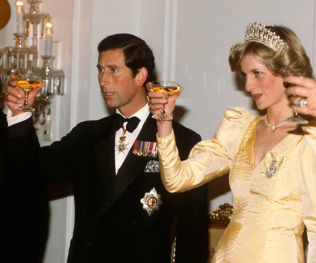 Prince Charles and Princess Diana raising a toast during the Government House Ball in 1983.