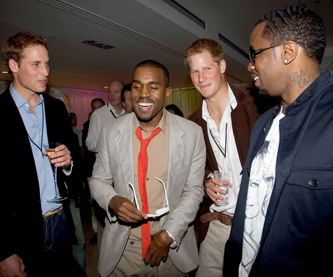 Prince Harry and Prince William throwing it back with Kanye West and P Diddy. Also, shout out to P Diddy’s Diana top.