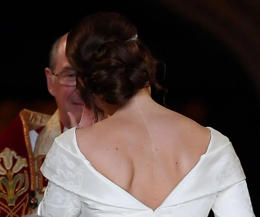 Princess Eugenie’s scoliosis scar was proudly on display during her nuptials to Jack Brooksbank. (Image: Getty)