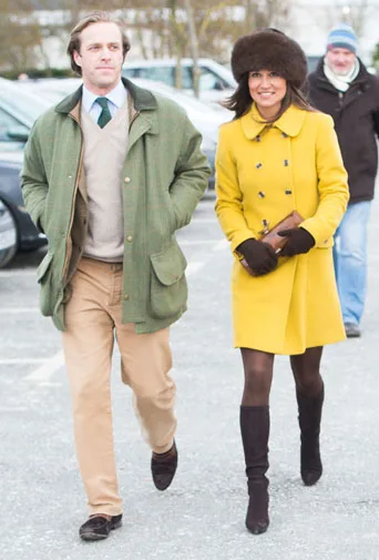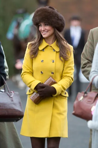 Pippa looked stunning in a fur hat and custom-made yellow wool coat.