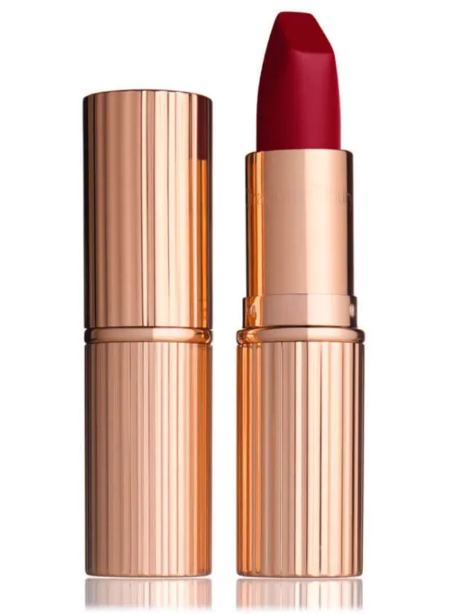 Charlotte Tilbury’s Red Carpet Red from her Matte Revolution Lipstick range is Amal’s go-to lip shade.