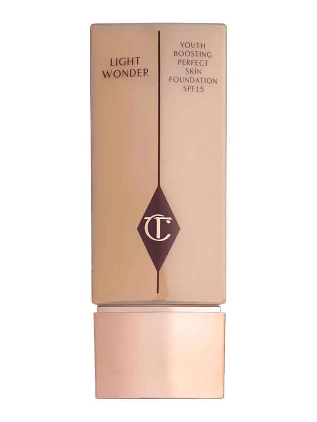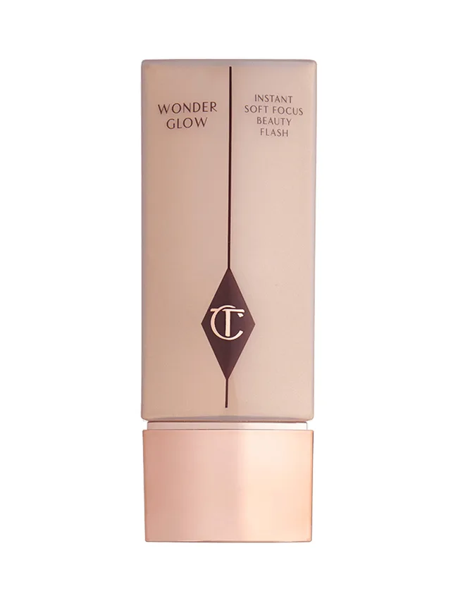 After moisturising, Amal applies Charlotte Tilbury’s Wonderglow primer to protect the skin and provide a base for longer-wearing make-up.