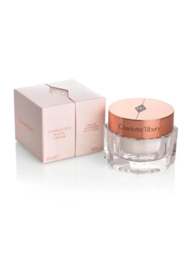 Arguably the most important step in the process to glowing skin, moisturiser – Amal applies Charlotte’s Magic cream formulated by her trusted make-up artist Charlotte Tilbury.