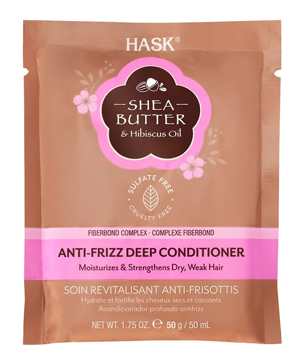 HASK Shea Butter & Hibiscus Oil Anti-Frizz Deep Conditioner Sachet, shop it here on sale for $3.49.