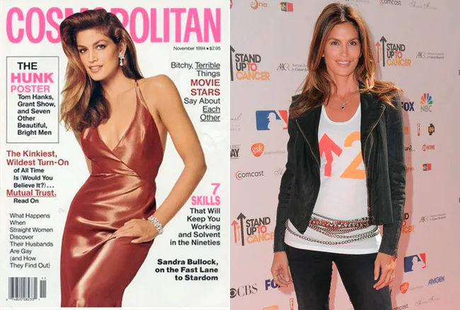Cindy Crawford at 28 in 1994 and at 45 in 2011.