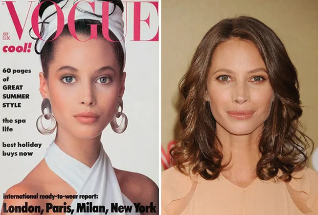 Christy Turlington in 1986 aged 17 and in 2011 aged 43.