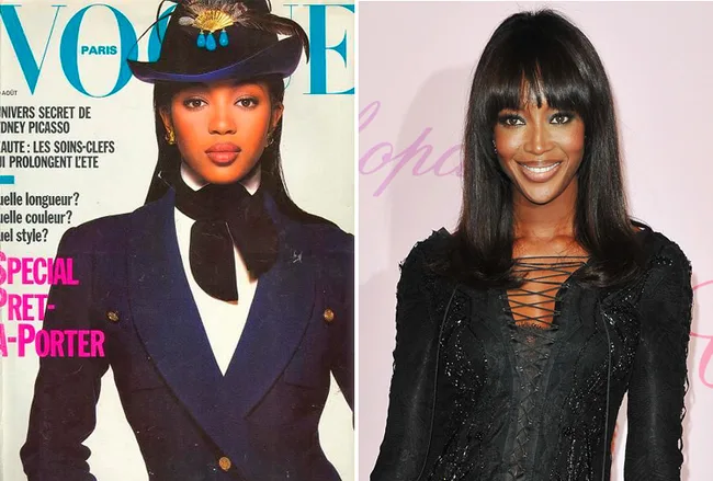 Naomi Campbell aged 28 in 1998 and aged 41 in 2011.