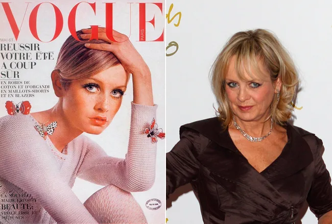 Twiggy at 18 in 1967 and at 62 in 2011.