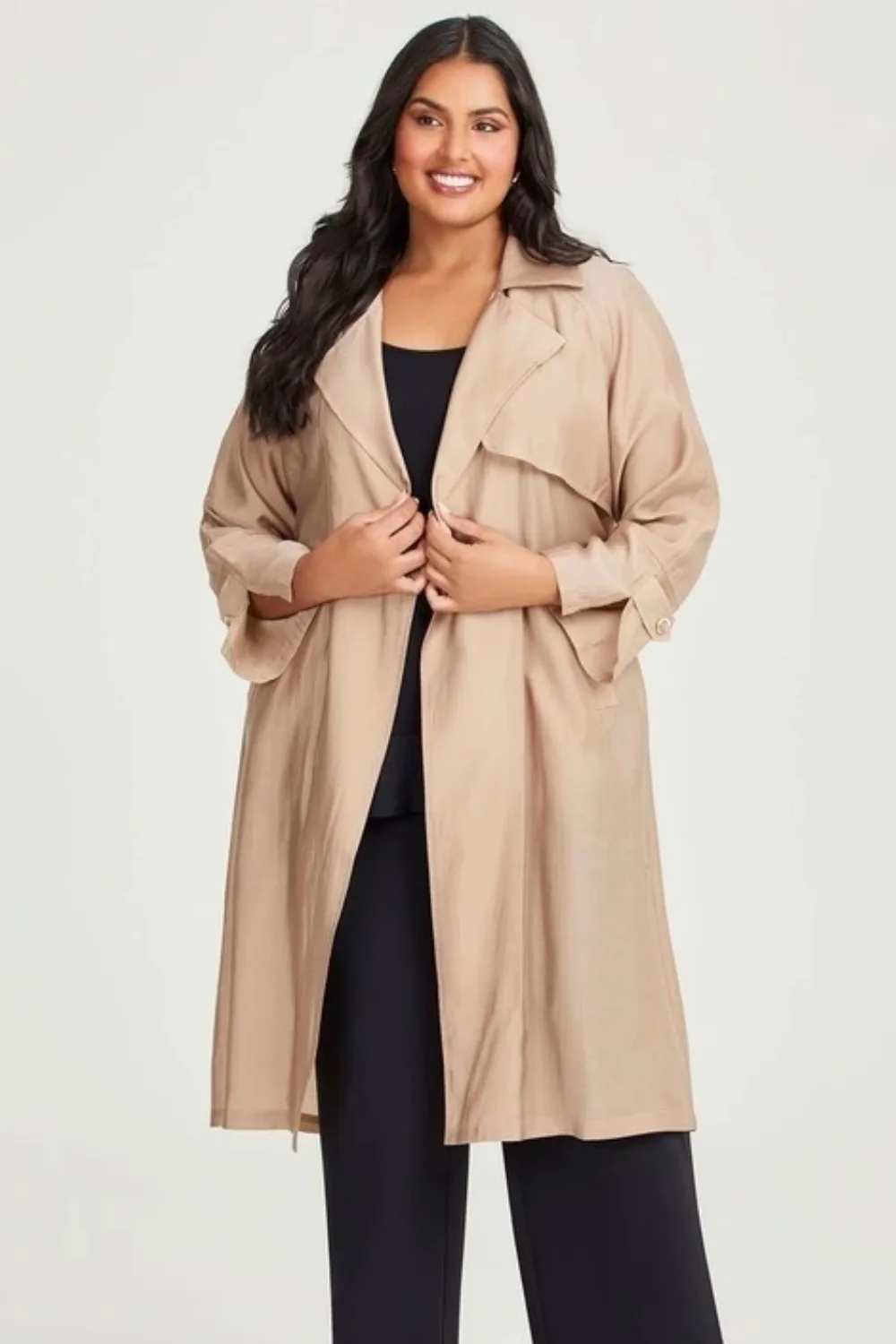 This long trench coat is made from a soft, drapey lyocell viscose blend fabric that effortlessly drapes over your curves, while its unlined design allows for lightweight layering.