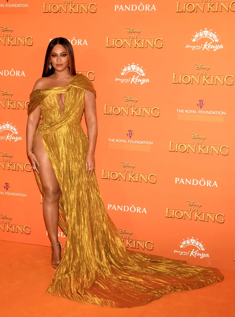 (Getty)Ensuring that everyone knew about the dress’ daring detail, the queen of music, who plays Nala in the live action remake, was seen doing her very best impression of the pose made famous by Angie Jolie.