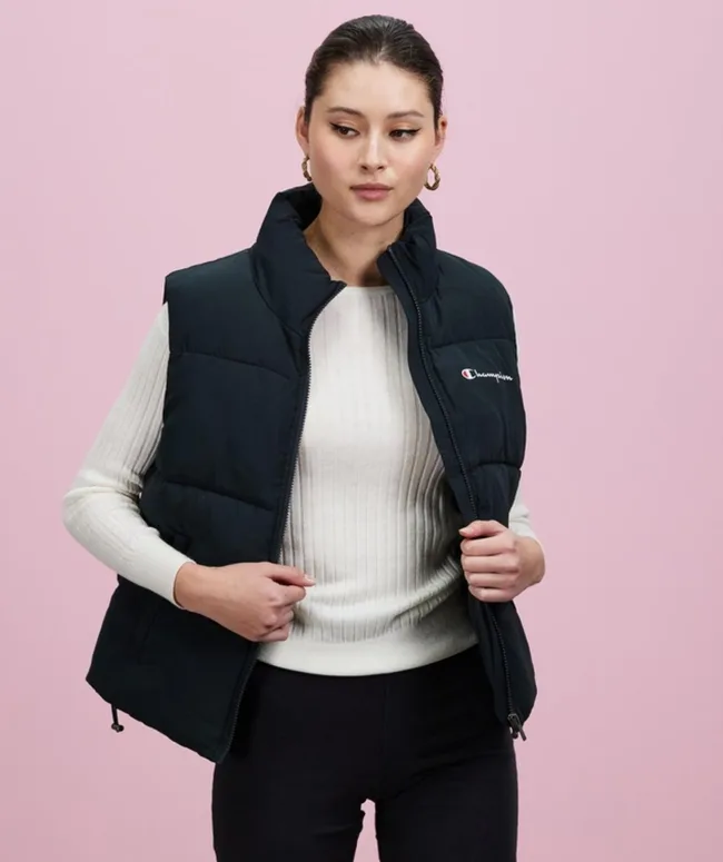 Champion Rochester athletic puffer vest, $109.99 at The Iconic