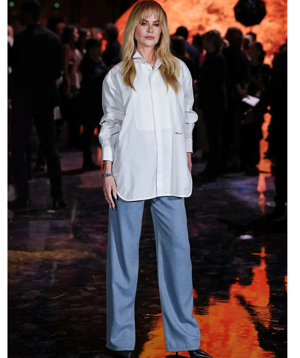 Paired with relaxed wide-leg jeans and razor-sharp black pointy pumps, the look struck a perfect balance between nonchalance and intent. It was quietly powerful — less “look at me” and more “watch me now.” In Kidman’s hands, the white shirt wasn’t just timeless — it was transformative.