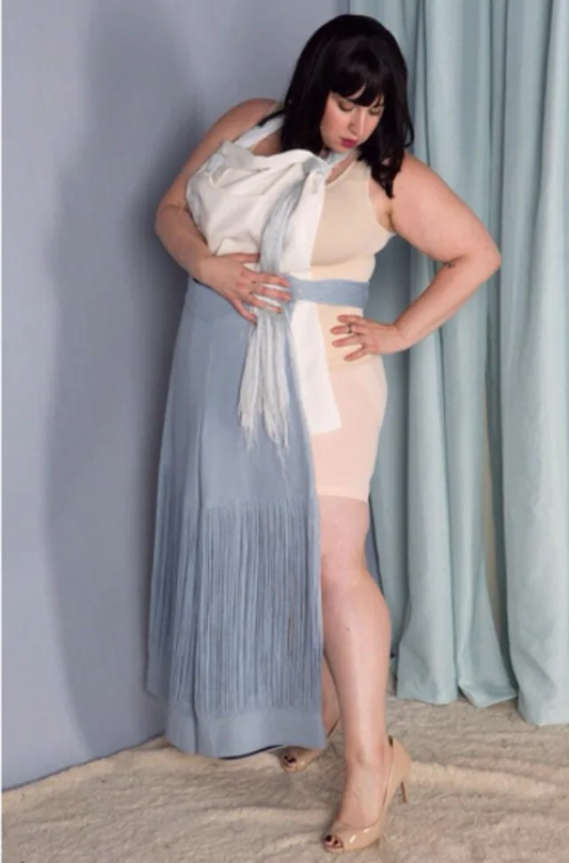 In a recent piece with You Do You titled ‘What Is Sample Size?’ she modelled sample size clothing as a way to highlight the ridiculousness of the size of the clothing. Sample size clothing worn by models on the catwalk tends to vary from a US size 0-4 which equates to a UK size 4-8.