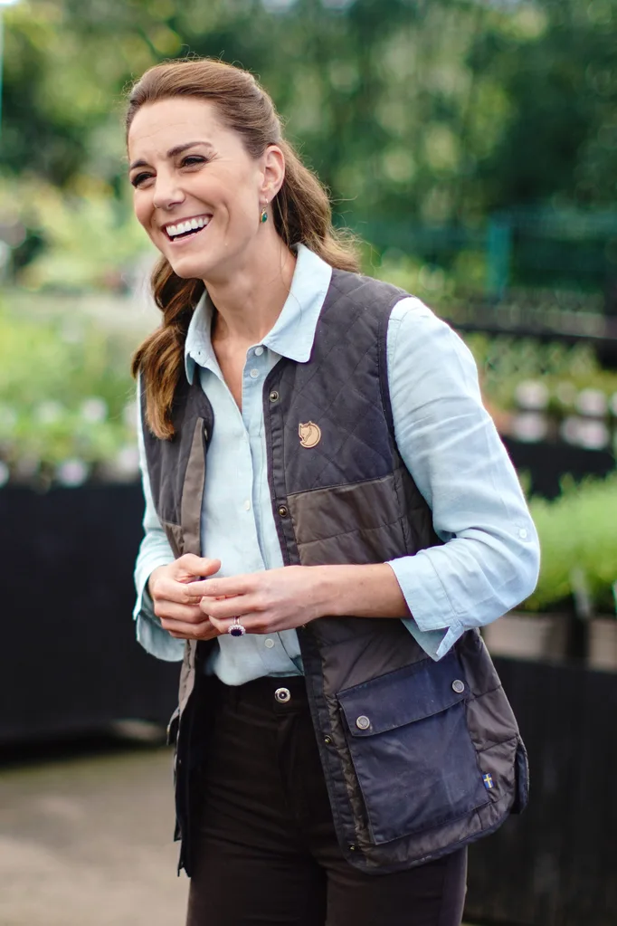 (Getty)Wearing a simple blue Jaeger shirt with a padded vest by Fjällräven along with a pair of jeans designed by Massimo Dutti, Kate was the image of casual chic.